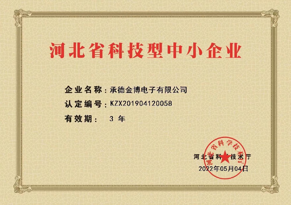 喜訊!熱烈祝賀承德金博電子有限公司再次獲得河北省中小企業(yè)認(rèn)定